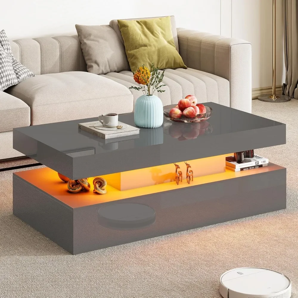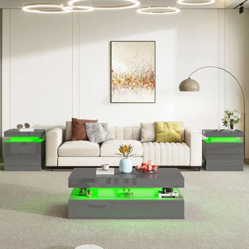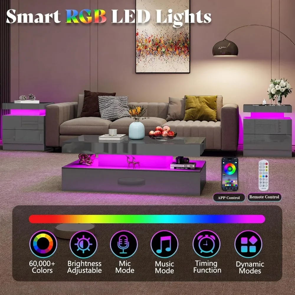 - LED Lights Center Table: Sofa table equipped with over 60,000 colors & multi-dynamic modes(static, flashing, jump, and fade) to choose from, adjusted by remote control and APP. Create any home atmosphere you want