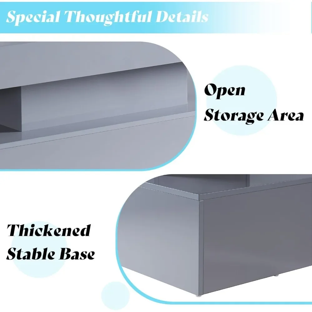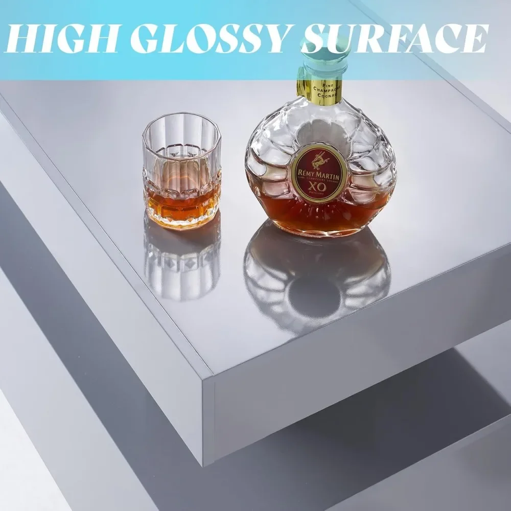 - High Glossy Coffee Table: UV high gloss paint & wood grain surface make this center table effortlessly blend into various interior decor, bringing a sleek modern minimalist aesthetic to your room
