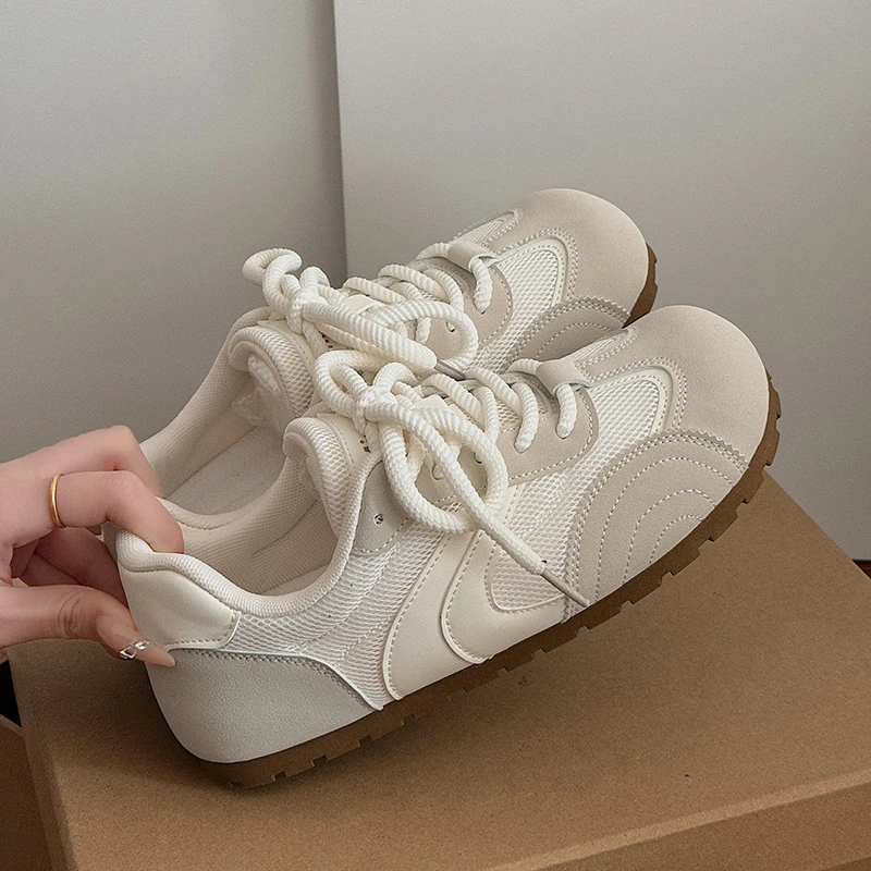 Round Toe Flat Casual Shoes Spring 2025 New Trainers Women's Breathable Thin Bottom Sports Flat White Shoes